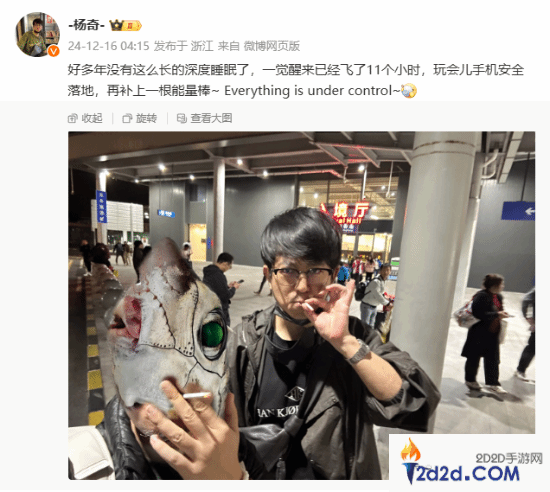 TGA 2024颁奖典礼现已正式结束,《黑神话:悟空》美术总监杨奇再次在微博发文,表示自己已经回到了中国,并表示:“好多年没有这么长的深度睡眠了,一觉醒来已经飞了11个小时,玩会儿手机安全落地,再补上一根能量棒~ Everything is under control~”