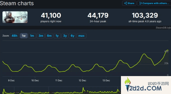 SteamDB显示,这款屡获殊荣的游戏在过去24小时内吸引了超过44000名Steam玩家。这是近几个月来的最高记录,这主要得益于前两天TGA公布的《巫师4》预告,该宣传显然鼓励了许多游戏玩家重拾杰洛特的冒险故事,又让《巫师3》迎来第二春。