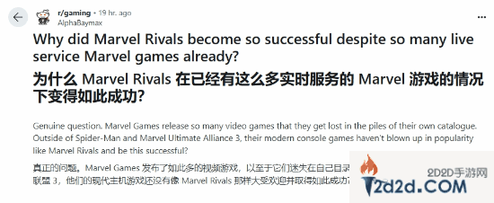 最近Reddit上的网友AlphaBaymax发文询问:“为什么《漫威争锋》会如此成功,尽管已经有这么多漫威的在线服务游戏了?”