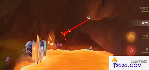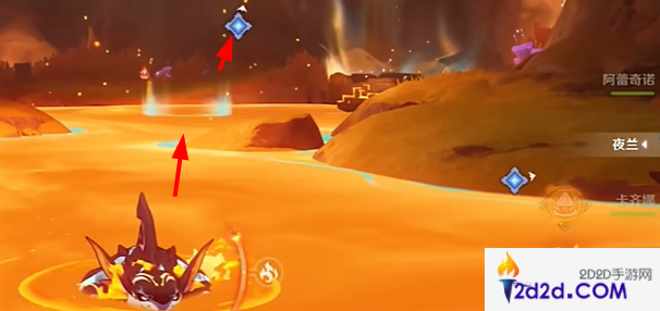 4、转换至鳍游龙的形态后,玩家需敏锐地寻找隐藏于炽热岩浆中的光环指引,这些光环不仅是安全的通道,更是跳跃前行的助力,引领着玩家向任务目标稳步前行。