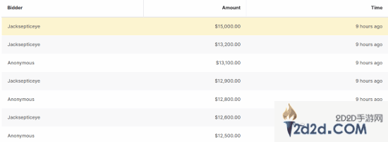 据悉,拥有这幅海报的玩家是知名油管UP主CDawgVA,其表示是为了慈善事业才决定把海报拍卖出去。从下图可以看到,参与拍卖的玩家仅有少数,且参与次数最多的玩家为油管UP主Jacksepticeye。