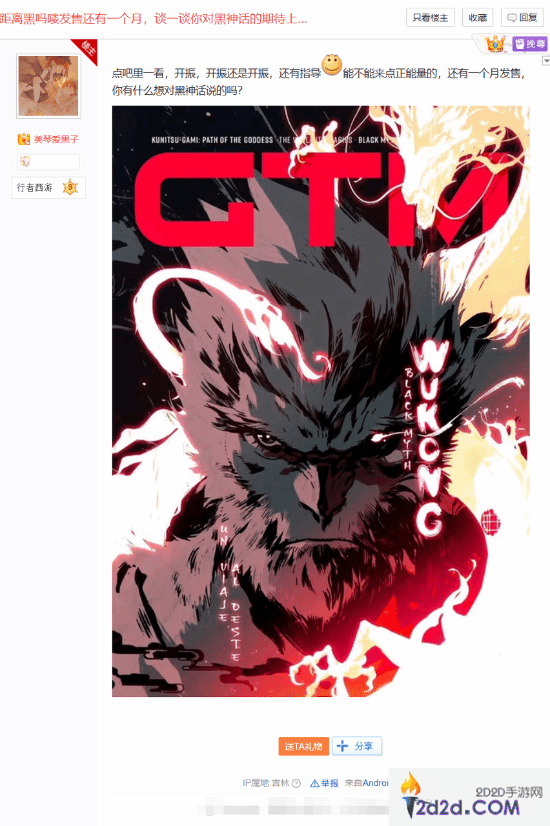 7月20日,有玩家以游戏临近发售为由,在贴吧发起了讨论,主题为“你对《黑神话:悟空》期待的上限及下限”。随后,玩家们表达了自己对游戏上下限的看法。