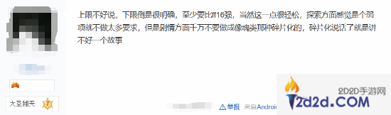 有玩家表示:“上限不好说,下限倒是很明确,至少要比《最终幻想16》强。当然,这一点很轻松,在游戏的探索方面感觉是个弱项,就不做太多要求了,但是剧情方面千万不要做成像魂类那种碎片化的,碎片化容易导致故事讲不好。”