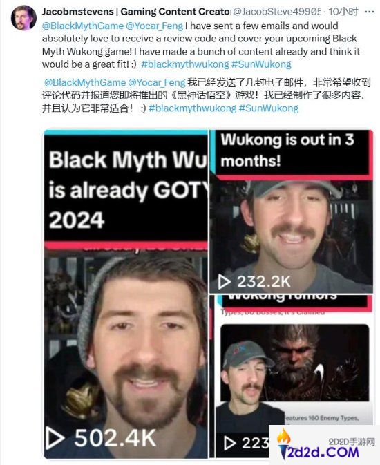 Jacobmstevens就这么做了,他是一名美国的游戏博主,在Tiktok上有16万的粉丝,曾多次制作《黑神话:悟空》的相关内容,视频播放量也有数十万。