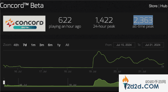 《星鸣特攻》在7月18日至21日期间开启公测,测试期间Steam玩家在线峰值仅有2363人,可以称得上非常不理想。该作在PS商店中的评分也已降至2.69分(五分制),好评率仅为29%。