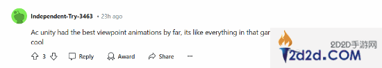 玩家们也纷纷附和。有玩家调侃道:“这就像删除了游戏里著名的信仰之跃一样。”还有玩家表示:“到目前为止,《刺客信条:大革命》拥有最好的视点动画。”
