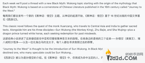 官方转发了Reddit的一则帖子,他们每周都会发布一个《黑神话:悟空》主题的帖子,第一周从这个神话的起源开始,《黑神话:悟空》基于16世纪的中国古典文学作品《西游记》。