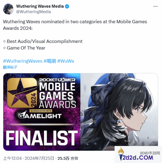 棒!《鸣潮》《崩铁》荣获移动游戏奖年度最佳等多项提名